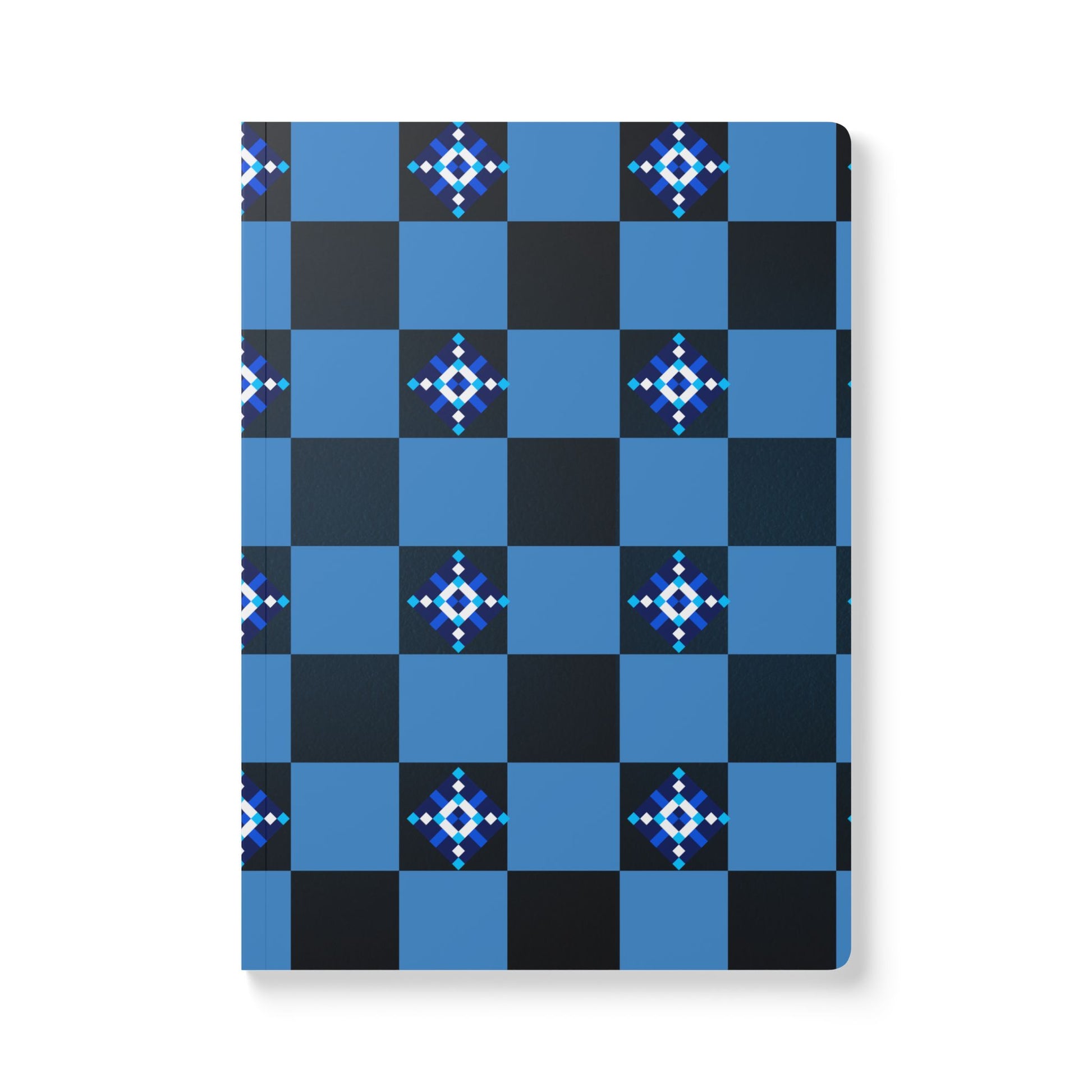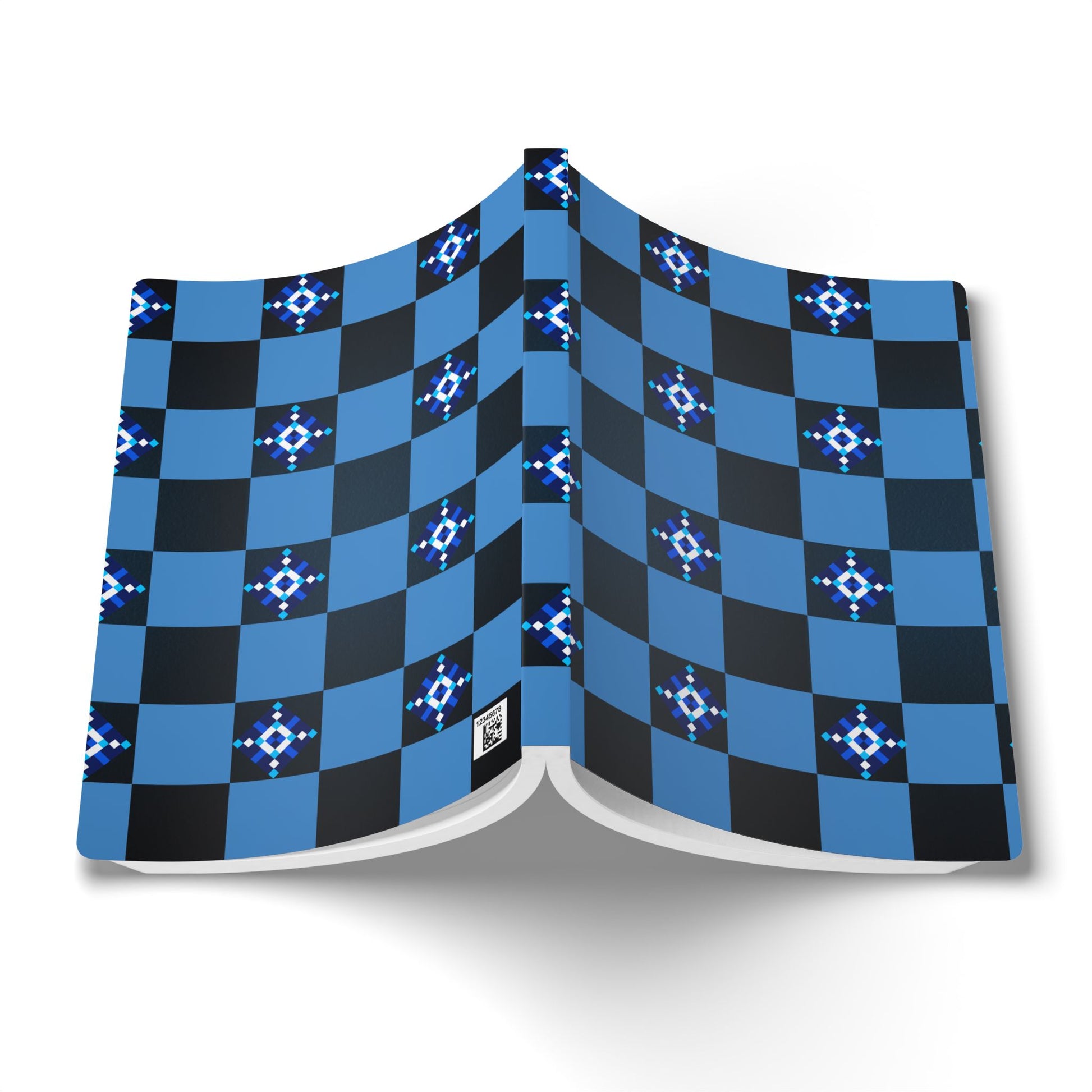 Vibrant Softcover Journal with Intricate Blue Pattern, Notebook for Journaling, Gift for Writers, Creative Journal, Blue Checkered Journal